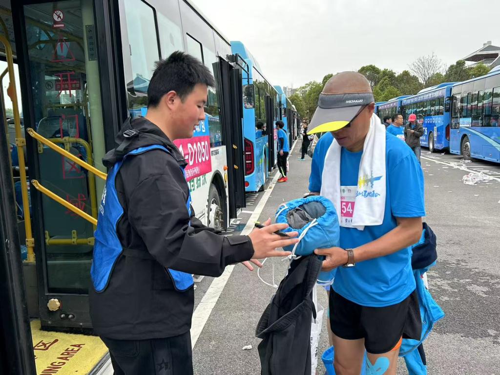 30日凌晨,32名志愿者及带队老师便已集合完毕,他们精神抖擞,迅速投入到准备工作中。在马拉松的发号施令、存取衣物等重要区域,志愿者们身着统一服装,面带微笑,有条不紊地协助工作人员开展工作。