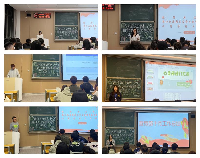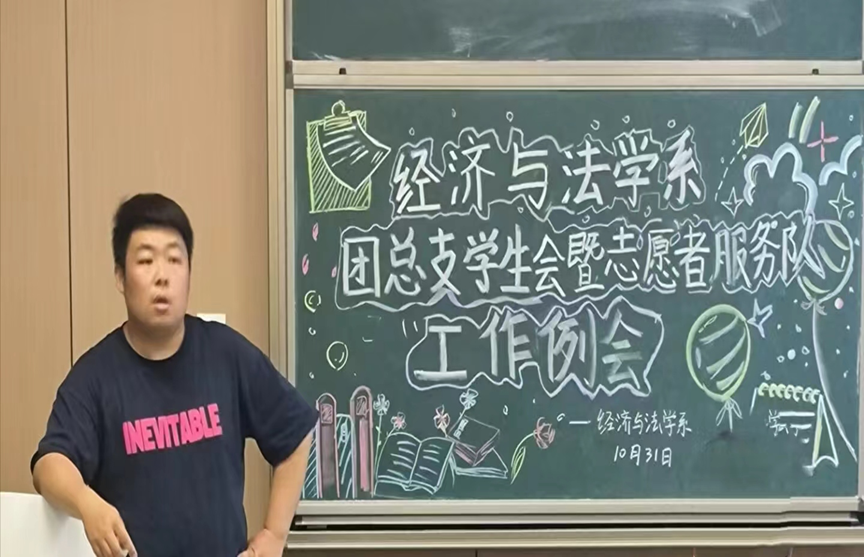 本网讯(见习记者:梅雨婷)10月31日晚上七点,经济与法学系在教学楼C–317召开第十九届团总支学生会暨志愿者服务队十月全体工作例会。辅导员卢佳智及学生会全体成员参加此次例会,会议由经法系学生会副主席黄春桥主持。