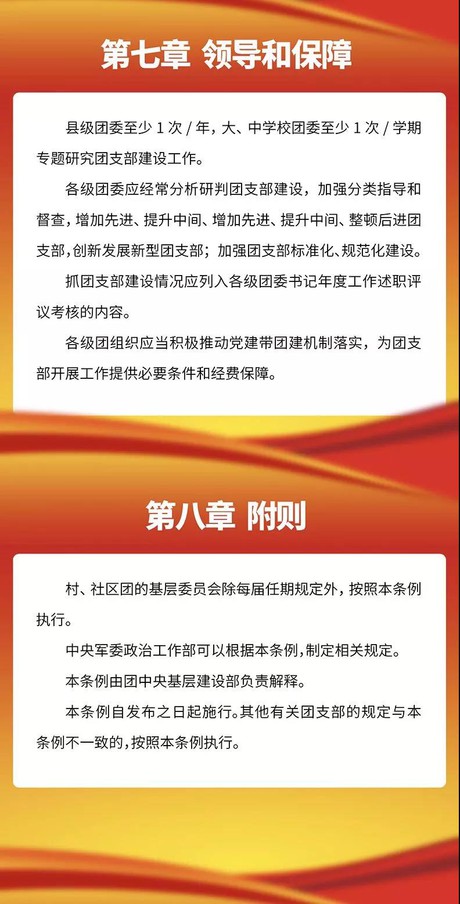 第二条 团支部是团的基础组织,是团组织开展工作的基本单元,是团的全部工作和战斗力的基础,担负直接教育团员、管理团员、监督团员和组织青年、宣传青年、凝聚青年、服务青年的职责。