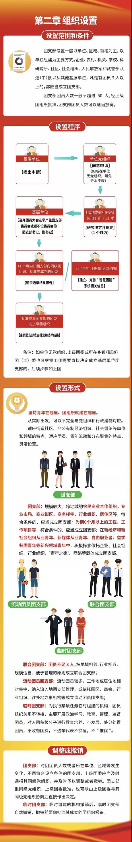 第五条 坚持青年在哪里、团组织就建在哪里,团支部设置形式应当从实际出发,可以不完全与党组织和行政建制对应。适应街道社区、非公有制经济组织、社会组织等单位和领域的特点,适应团员、青年流动和分布聚集的特点,灵活设置团支部。