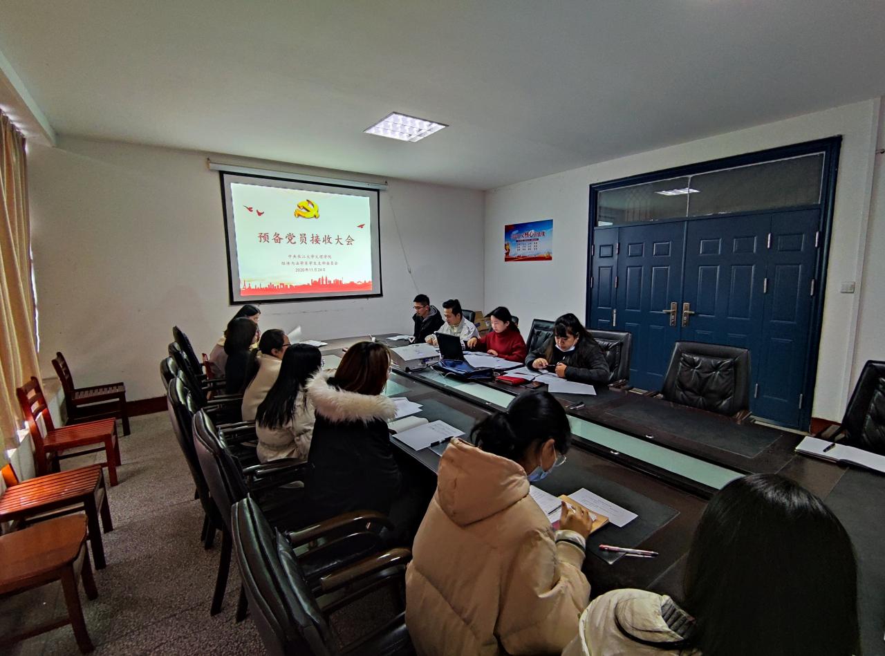 本网讯(通讯员 文国霞)11月24日下午,经法系学生党支部召开全体党员大会。依次讨论陈佳乐、唐蛟、魏宇豪、方天龙、王运南五名发展对象能否入党的事宜。经法系学生党支部书记杨杉杉、辅导员卢佳智及全体党员参会。会议由经法系学生党支部组织委员文国霞主持。