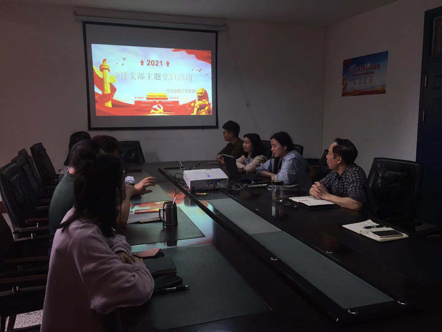 5月20日下午14:30,经法系全体教职工在系会议室开展5月政治学习和支部主题党日活动。会议由党总支书记李成军主持。