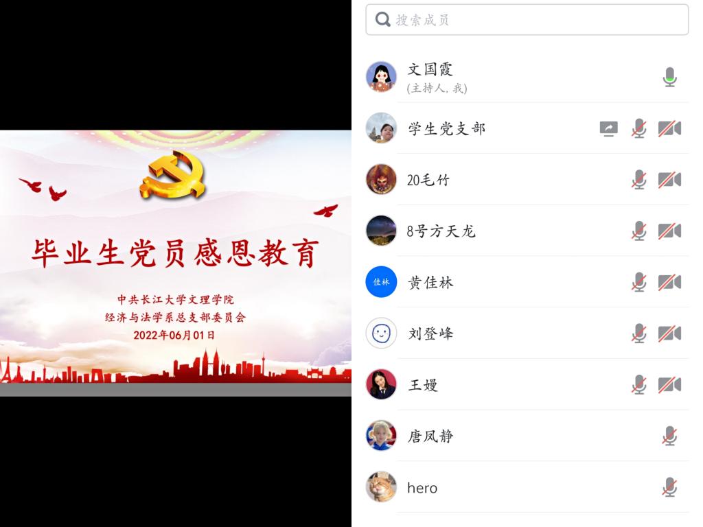 本网讯(通讯员 江晟瑀)6月1日中午,经法系组织开展毕业生党员离校教育报告会,系党总支书记李成军以“青年党员要成为优秀骨干力量”为题作专题报告。学生党支部毕业生党员13人参加,报告会以线上线下方式同步进行。