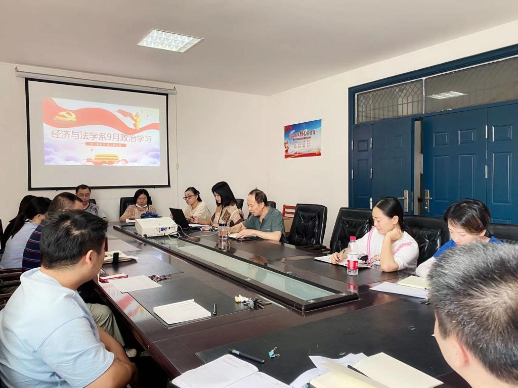9月15日下午15:00,经法系全体教职工在系会议室开展9月政治学习和支部主题党日活动。会议由党总支书记李成军主持。