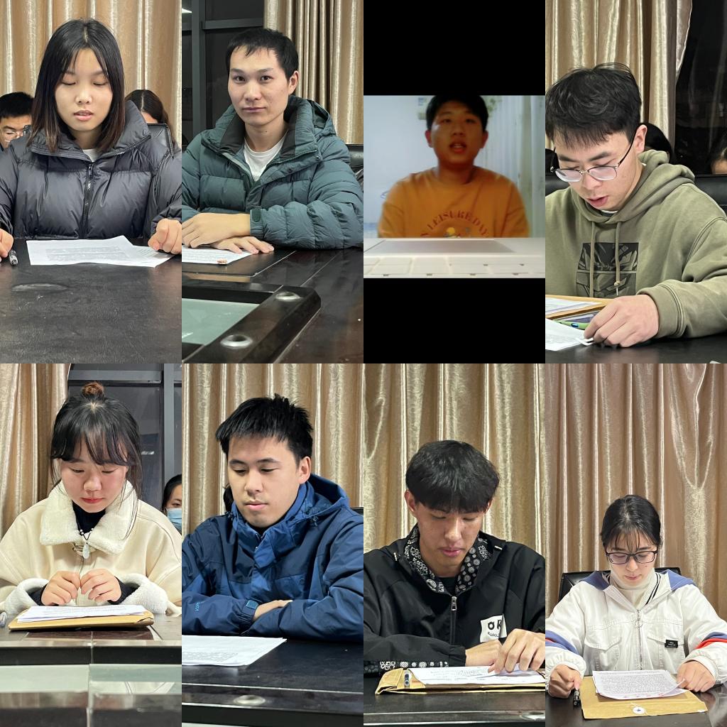 拟转正的八名预备党员同志依次发言(上排:杜冰、陈旺、冯文轩、丁伟 下排:马燕妮、李俊杰、刘浩冉、陈敏)