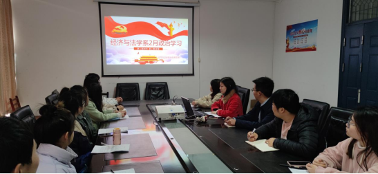 2023年2月28日中午12:30,经法系学生党支部党员在系会议室开展2月学生支部党日活动。会议由学生党支部书记杨杉杉主持。