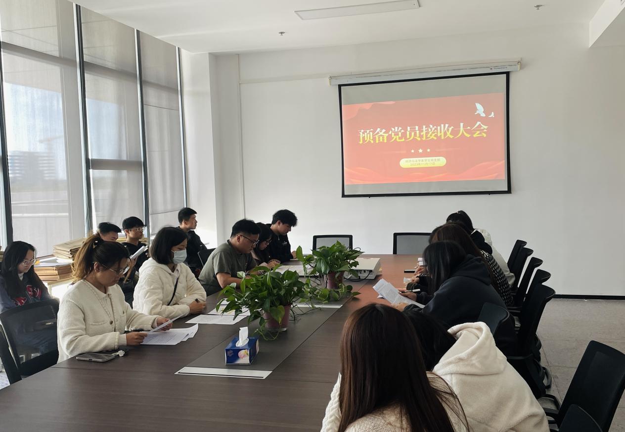 支部书记宣布大会决议后,五名新接收的预备党员同志依次表态,表明自己对大家提出意见的看法和今后的决心,他们纷纷表示,感谢组织和各位老师的培养,感谢各位党员同志的帮助,今后将认真反思自身存在的问题并努力改正,向优秀党员学习,始终做到不忘初心,牢记使命,砥砺奋进。会议最后,杨杉杉对以上同志表示衷心的祝贺,她告诫大家要时刻关心国家大事,坚定政治立场,提高自身思想觉悟。同时她结合自身体会对大家提出要求,一是从程序上入党,牢记今日,同时应有自己的抱负与理想;二是从组织上入党,为党组织的建设而奋斗;三是从思想上入党,要有模范意识,落实到行动中去。要求全体党员不忘入党初心,牢记党员使命。