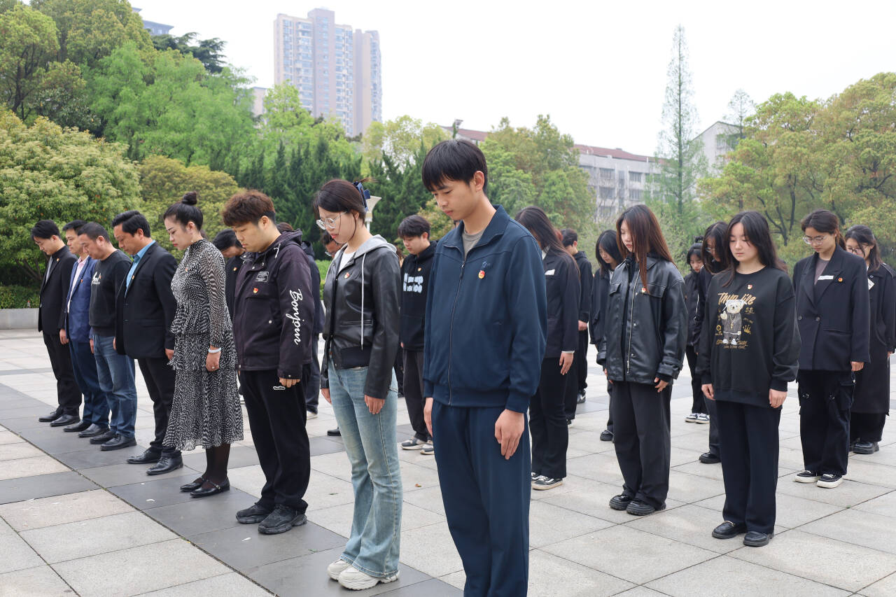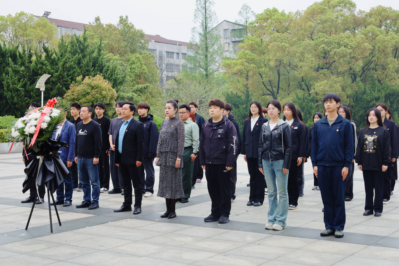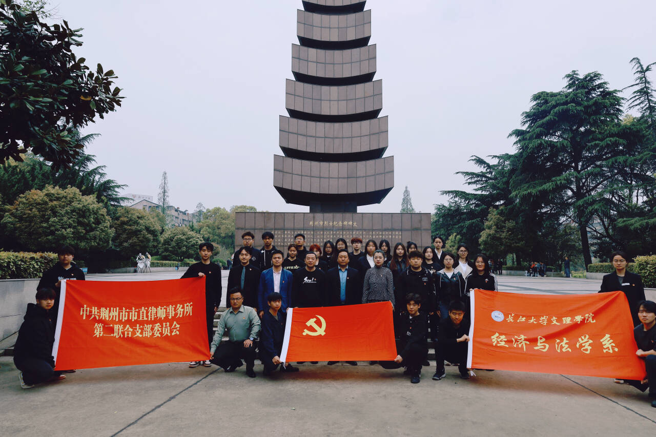 本网讯(见习记者:于琪琪)为缅怀革命先烈,传承红色基因,弘扬爱国主义精神,4月3日,经济与法学系党总支联合荆州市市直律师事务所第二联合党支部前往荆州市沙市区烈士陵园开展“清明祭英烈、丰碑励青春”祭扫活动。经济与法学系党总支书记辛裕、副书记杨杉杉、荆州市律师协会秘书长、湖北大柏地律师事务所副主任李季、荆州市律师协会理事、湖北旻韬事务所律师张敏、辅导员卢佳智、刘曼莹,学生党员、学生干部代表,共计50余人参与活动。