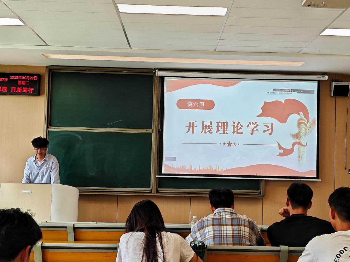 本网讯(学生记者 王小庆)2025年4月22日中午12:00,经法系学生党支部党员在教学楼C-122m开展4月政治学习和支部主题党日活动。本次会议,由学生党支部书记杨杉杉主持。