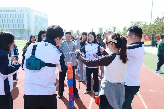 本次比赛包括“珠行万里”、“车轮滚滚”、“毛毛虫冲刺”、“齐心协力”、“持杆蛇形往返接力”等团队项目。此次创编项目竞赛不仅考验教职工的身体素质,更考验团队协作和沟通能力。在“齐心协力”的比赛过程中,我系教师展现出了精湛的技艺和默契的配合,他们如同一支训练有素的队伍,共同向着胜利的目标前进,成功夺得冠军。
