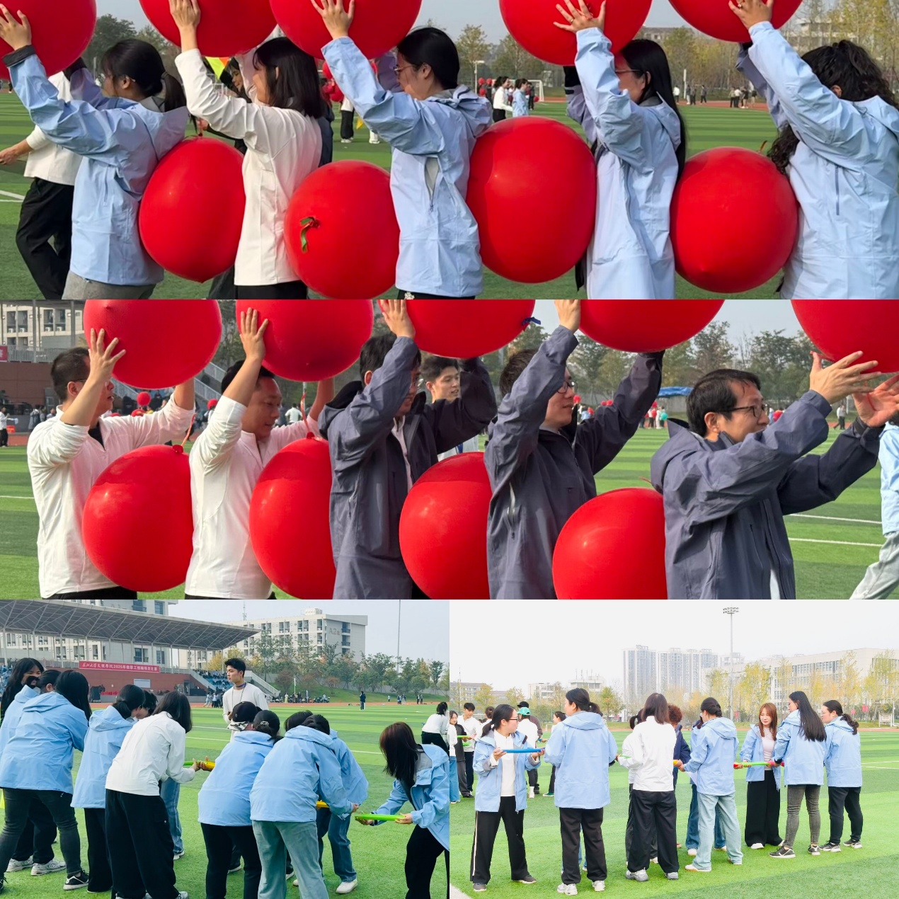 竞赛精心设置“筷子运球”“达芬奇密码”“一圈到底”“珠行万里”“车轮滚滚”等多个团队项目,既考验教职工的肢体协调与运动技能,更凸显团队协作、高效沟通的重要性。赛场上,我系参赛教职工凝心聚力、奋勇争先,凭借默契配合与不懈拼搏展现出强劲竞争力,多个参赛队伍在比拼中脱颖而出,充分彰显了经法系教职工的竞技实力与协作风采。