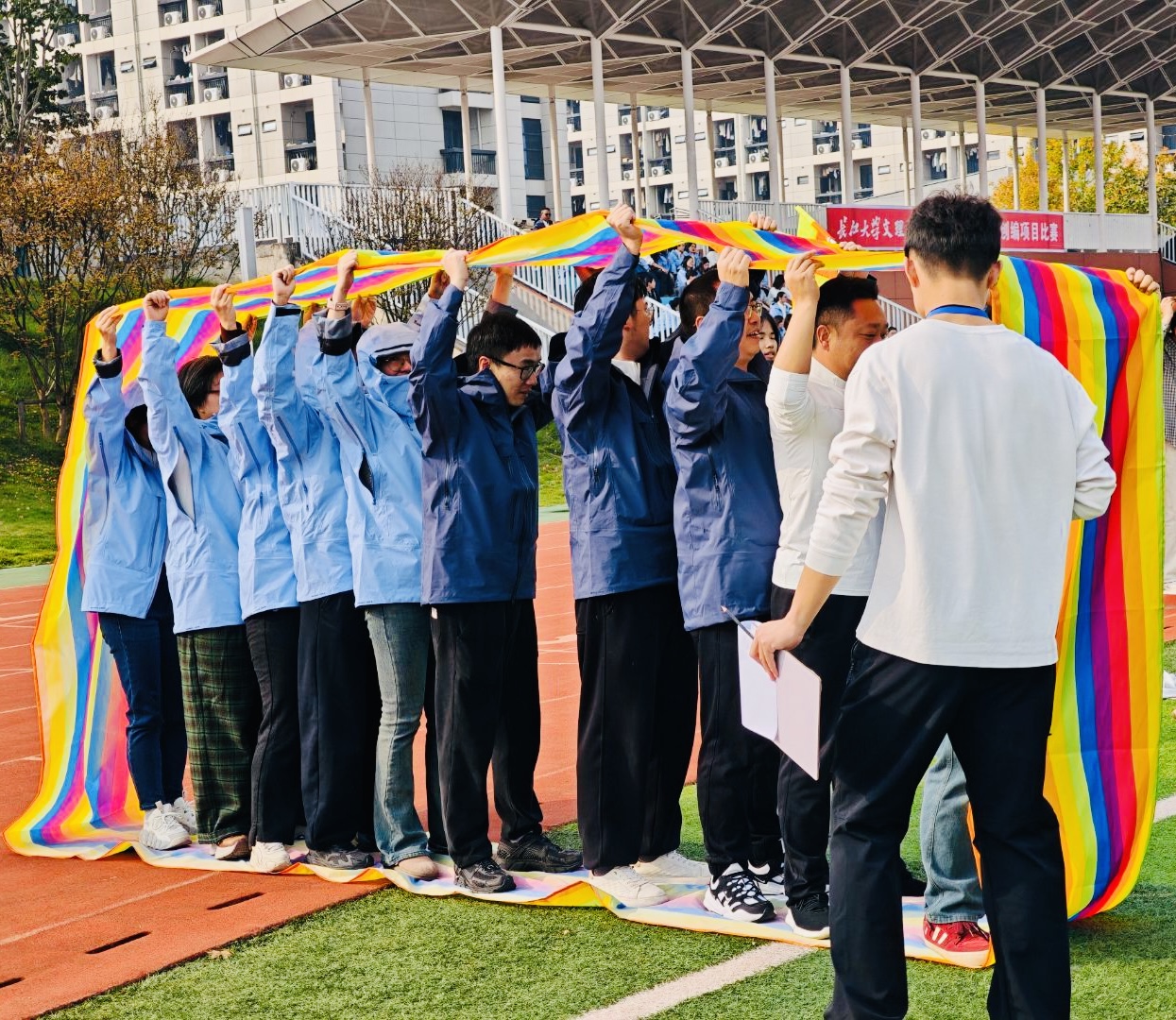 本网讯(见习记者 陈世行)金秋时节,竞技赛场活力迸发。10月30日下午,yl7703永利集团第十九届教职工创编项目竞赛在主校区操场成功举办。经济与法学系全体教职工以饱满热情积极参赛,在各项赛事比拼中凝心聚力、奋勇争先,充分彰显了团结奋进、昂扬向上的优良精神风貌。