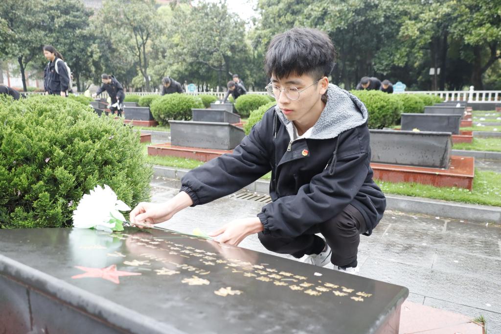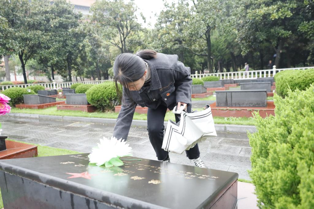 为烈士墓碑献花