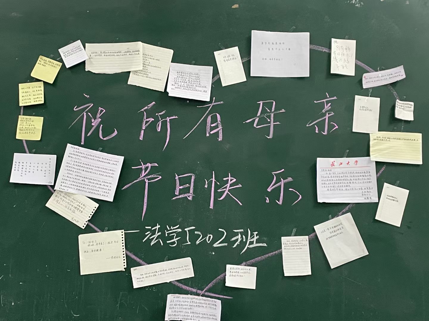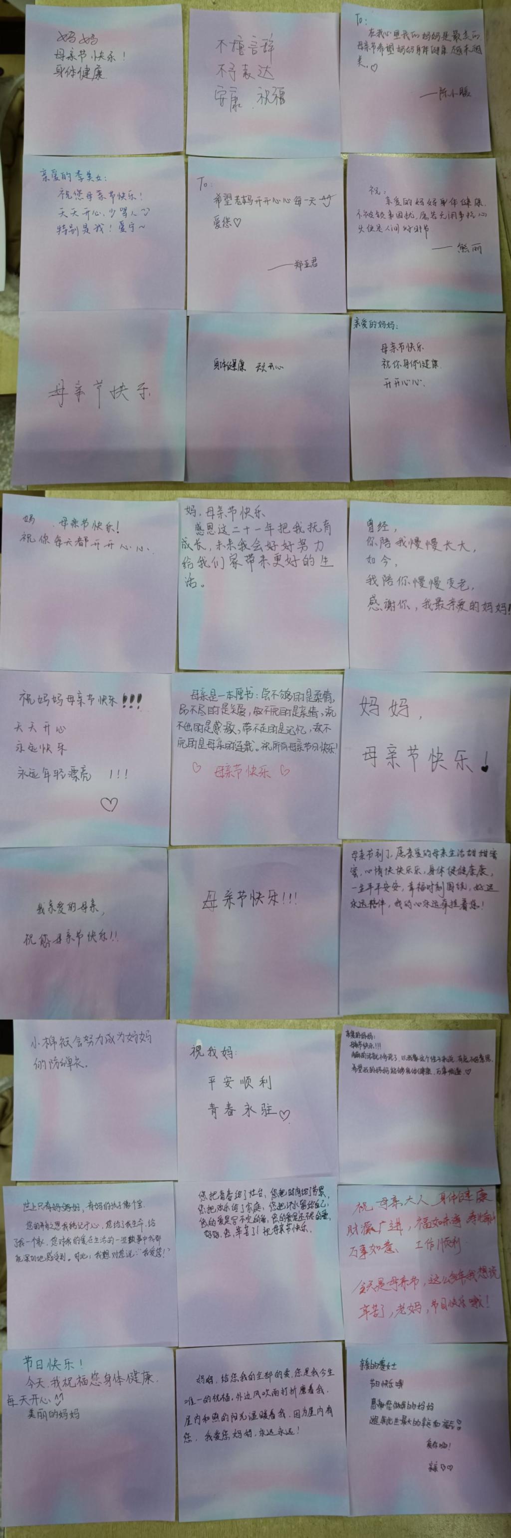 本网讯(学生记者 郁鑫)5月9日,母亲节到来之际,我系各班同学都写下祝福母亲的话,感恩母亲。