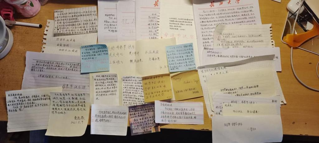 母亲节,通常是五月的第二个星期日。我系同学在母亲节这天,以书信的方式写下祝福妈妈的话语,各班以班级为单位,把写下的祝福以照片的形式发给母亲。