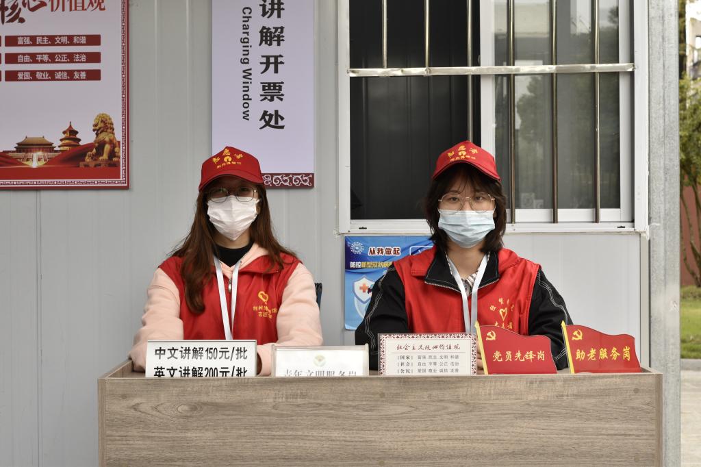 首先,安排志愿者抵达各个岗位,为参观博物馆的游客们提供帮助。在售票处,志愿者朱诗颖和郭念锋为游客们讲解景区规定,为参观游客提供指引。咨询室里,咨询员李小雨和金泽熟记博物馆规定的相关事项,以便为游客们提供及时有效的帮助。同时,提供导游辅助设备的租用服务。其他志愿者则分散在馆内各处,向游客们讲述文物的历史背景,加深游客对荆州历史文化的了解。