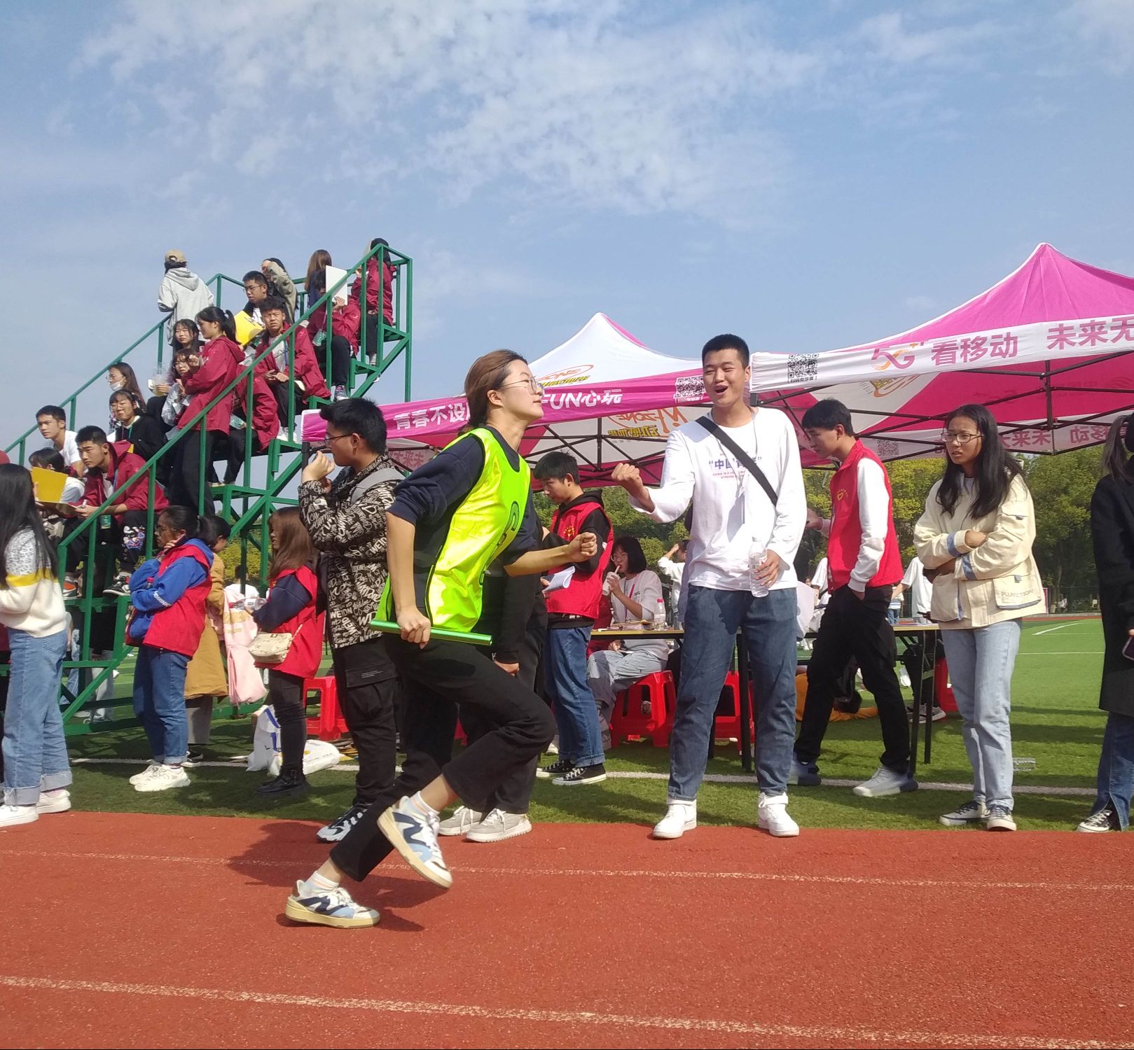 同时,在赛场上,运动员们在奋力拼搏。赛场下,由我系学生会成员组成的志愿者团队也时刻待命,为运动员们提供及时的服务与帮助,也为运动员们呐喊助威!