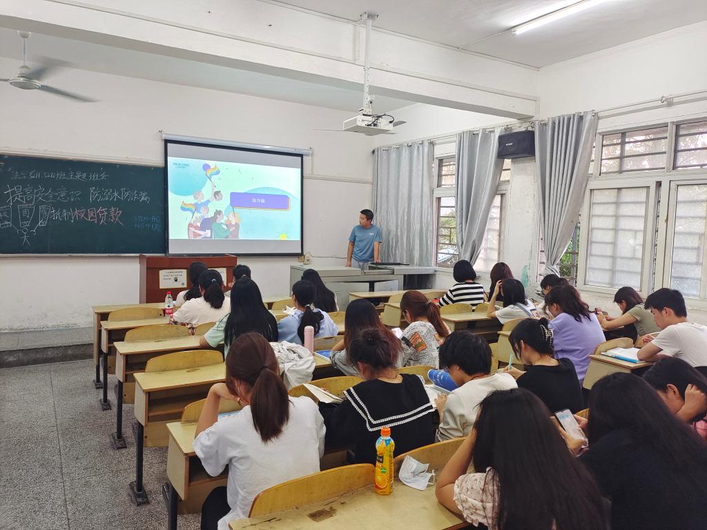 本网讯(见习记者 陈燕妮 帅赟)近期天气炎热,学生溺水事件处于高发期,为提高大学生安全意识,积极推进“平安校园”建设,进一步筑牢校园安全防线。经法系各班于6月2日早自习开展“提高安全意识 防溺水、防诈骗 抵制校园贷款”主题班会,班会由各班生活委员主持。