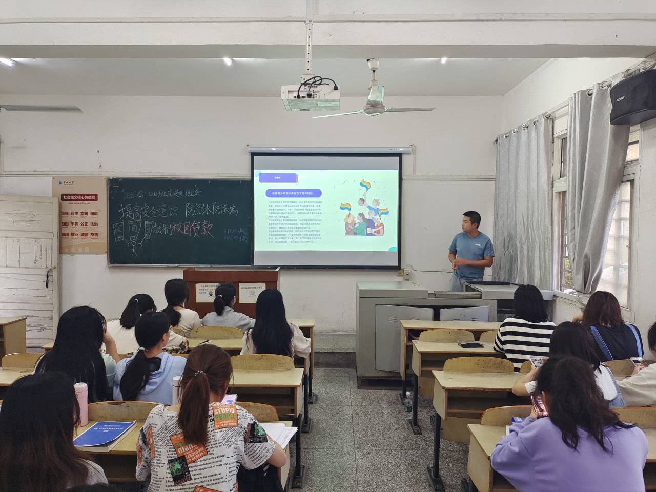 首先,生活委员从青少年溺水的整体特征、青少年溺水频发的主要原因以及防溺水的主要措施三个方面向同学们介绍了防溺水知识。接着,通过短视频的形式展示了不同的诈骗形式,使同学们对诈骗陷阱有了更深刻的了解。生活委员着重介绍了与大学生生活很贴近的校园贷,帮助同学们清晰辨别身边的“校园贷”诈骗业务圈套。最后,生活委员提醒大家要时刻对诈骗行为保持清醒认知,守护自己的合法权益。