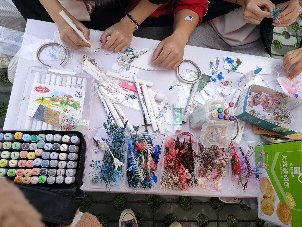 此次活动由“疫”起创意·“罩”靓青春、巧手显初心·礼赞二十大三个部分组成。同学们可以对口罩、塑料瓶和气球进行自主创新,同时,经法系团学组织也为同学们提供了丰富的工具,例如干花、贴纸、彩笔等,这吸引了许多同学前来参与,认真用心地进行创作。随后大家写下寄语,并将其展示在宣传板上,彰显了大学生们别样的风采,为校园风光增添了一抹亮色。
