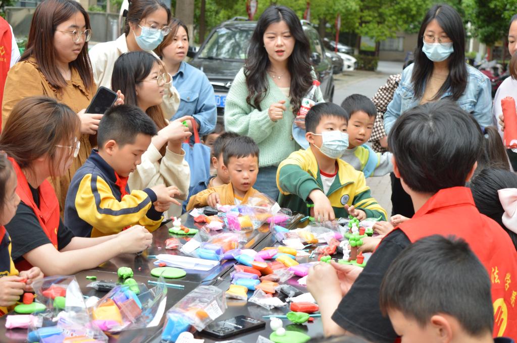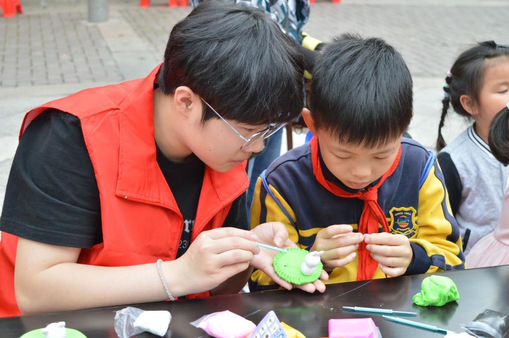 到达新风社区后,志愿者们开始对自己负责的区域进行简单清扫,并进行垃圾分类。随后,由社区工作人员组织开展手工黏土活动,每位志愿者带领两位小朋友,帮助他们进行手工黏土的制作,志愿者和小朋友们共同制作出了许多精美的手工黏土作品。在这过程中,志愿者与小朋友们相处融洽,彰显了“奉献、友爱、互助、进步”的志愿服务精神。