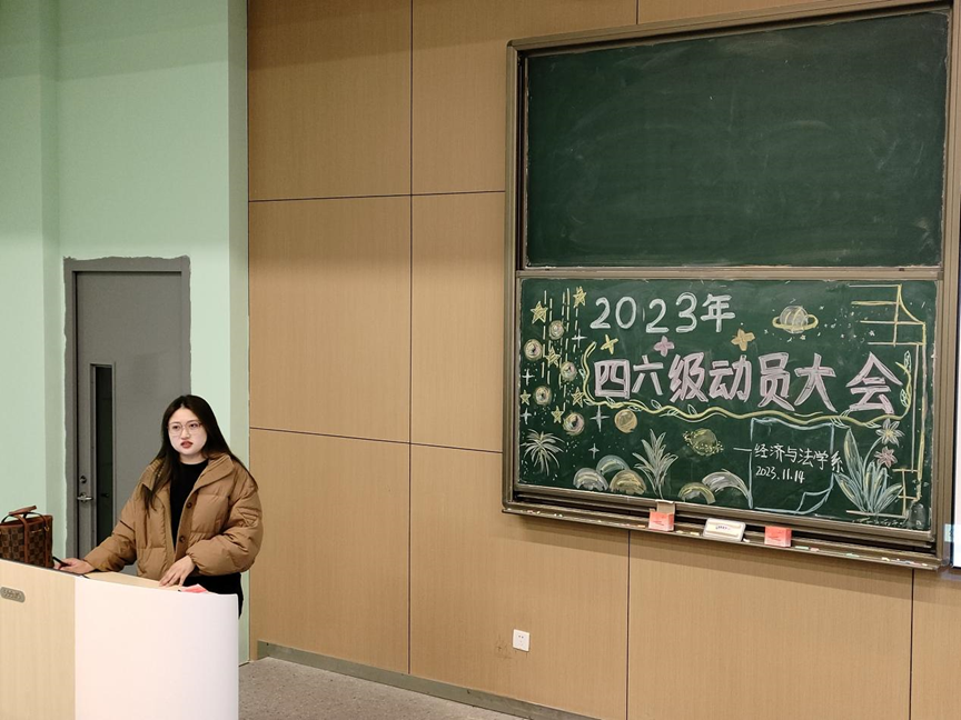 本网讯(见习记者:郑兴冰)全国大学生英语四六级考试在即,为进一步加强经法系学风建设,营造良好的复习备考环境,激发同学们学习英语的热情,经法系于11月14日晚上7点在B-213举行英语四六级动员大会。此次大会邀请了信息与机电工程学院的辅导员燕梦蝶老师为我系学子分享英语四六级考试相关的技巧与经验,大会由经法系辅导员刘曼莹老师主持,经法系2022级全体学生以及2023级部分学生参加。