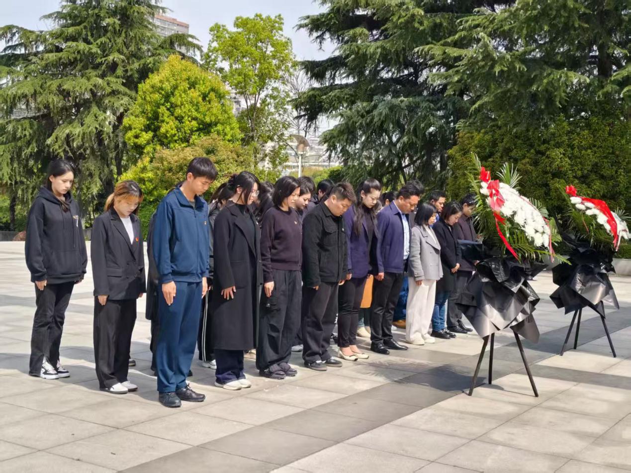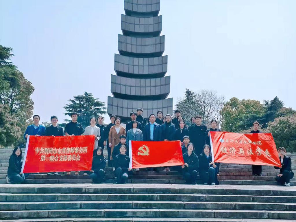 本网讯(学生记者:何美嘉) 4 月 1 日,清明前夕,为弘扬爱国主义精神,赓续红色血脉,经济与法学系奔赴荆州市沙市区革命烈士陵园,隆重举行 “缅怀先烈志,共铸中华魂” 清明祭扫活动。经济与法学系党总支书记辛裕、常务副主任罗明、党总支副书记杨杉杉、辅导员卢佳智、滕宋云、刘曼莹、荆州市市直律师事务所第一、第二联合党支部、学生党员、学生干部代表,共计40余人参与活动。