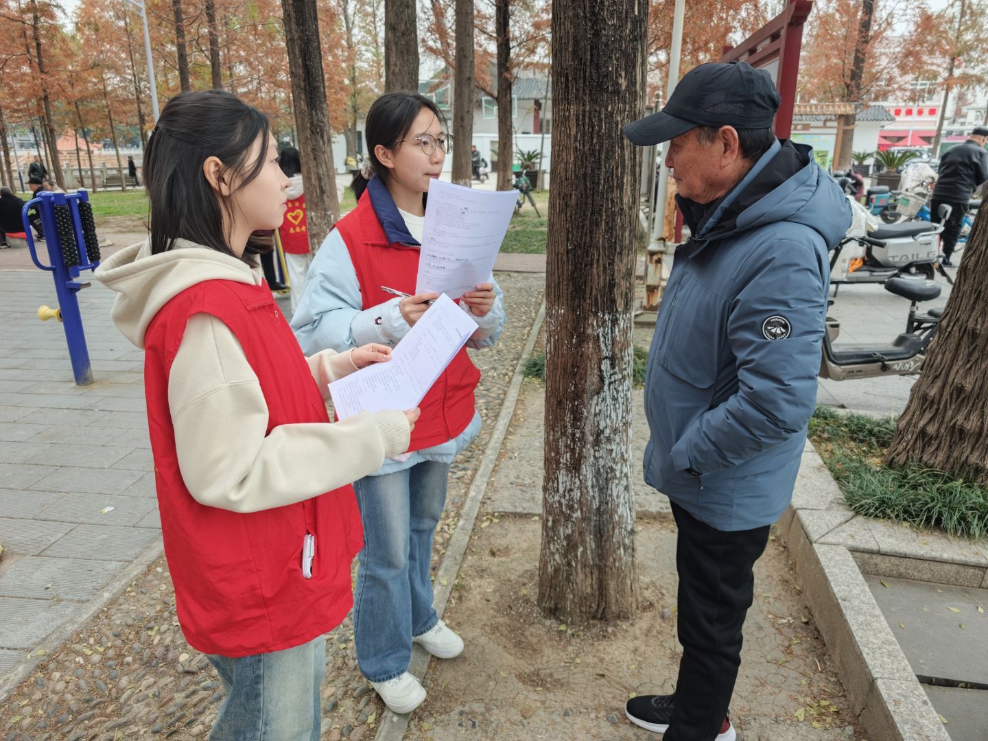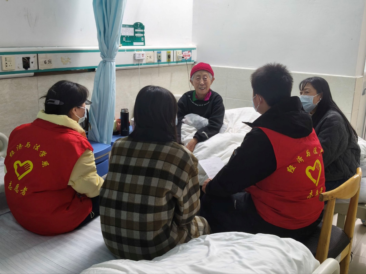 活动于当日下午正式开展。志愿者们身着统一标识的志愿者服装,抵达社区后,首先与居委会工作人员完成对接。服务队随后分为两个工作组协同推进:一组志愿者前往荆州石油四机医院,在现场耐心指导院内老年人及其陪护家属掌握扫码支付、视频通话、信息查询等智能设备常用功能,并对行动不便或长期住院的老年群体开展重点帮扶,在传授实用技能的同时传递人文关怀;另一组志愿者深入社区开展走访调研,通过结构化访谈系统了解老年居民在日常生活、健康照护、精神文化等方面的实际需求,为后续构建常态化、精准化的社区为老服务体系提供重要参考依据。