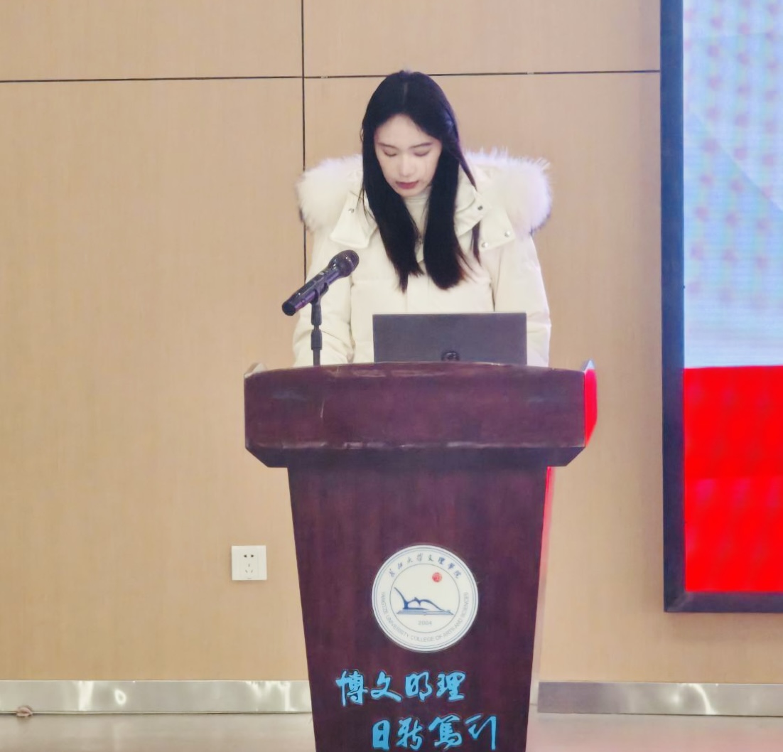 在经验分享环节,2023级法学专业吴红琴同学结合自身备考经历,围绕听力、阅读、写作翻译三大板块,系统介绍了“精听预判”“逻辑阅读”“清晰表达”等实战技巧,并强调了“微习惯积累”与“真题精练”的重要性。同年级沈世聪同学则聚焦考前冲刺阶段,通过模拟考试复盘,提出“定向补漏、核心突破、稳控心态”的冲刺策略,为同学们提供了具体可操作的复习建议。
