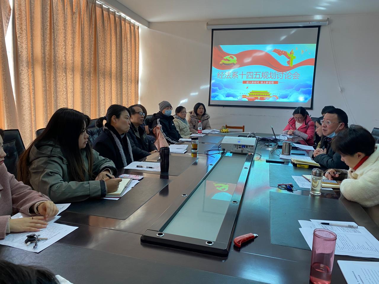 2021年1月12日上午,经法系全体教职工在会议室召开“十四五”事业发展规划讨论会议,会上,大家认真学习了《yl7703永利集团“十四五”事业发展规划编制工作方案》,然后围绕经法系“十四五”事业发展规划的编制展开讨论,大家发言积极、讨论热烈,为经法系在未来5年的专业建设、师资队伍建设、实验室建设、科研发展等方面建言献策。