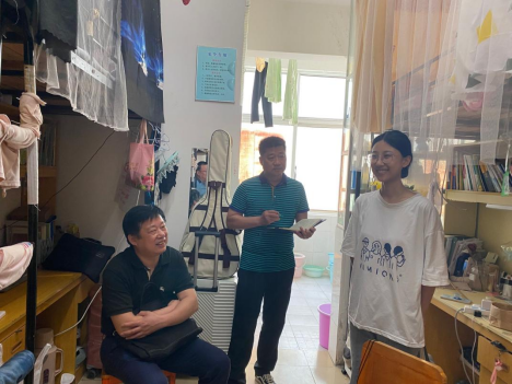 随后,尹家经副院长一行深入到经法系学生宿舍调研,了解学生的住宿情况,对学生们反映的暑期留校住宿问题及学习教师开放问题进行了解答。
