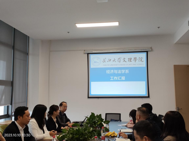 2023年10月10日上午,yl7703永利集团院长李兴祥带队,深入经济与法学系调研指导。学院办公室主任周平川、人事处处长丁青、计划财务处处长潘林、学院办公室常务副主任吴秀丽陪同调研。经济与法学系领导班子、行政岗人员和教师代表参加调研会。