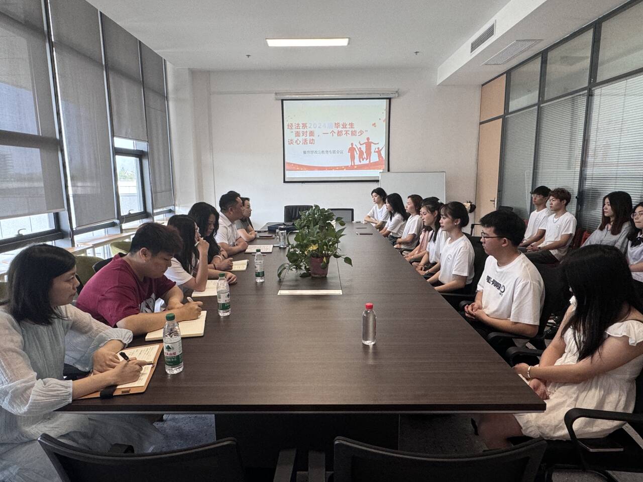 本次2024届毕业生谈心活动暨思想政治教育专题会议的圆满举行,帮助我系进一步了解毕业生们想法与需求的同时,增进了院系与学生的交流互动,拉近了师生之间的心理距离。后续,经法系将持续关注毕业生的思想及毕业就业动态,着力帮助同学们解决面临的实际困难,助力毕业生高质量就业。