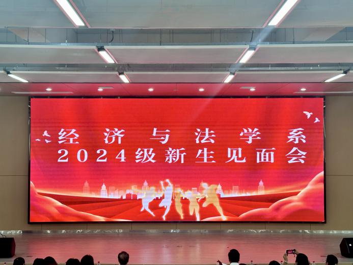 新的旅程,新的遇见。为帮助2024级新生快速融入新的学习和生活环境,促进学生之间的交流和合作,让每一位新生都能在校园中找到归属感和成长机会。经济与法学系于2024年9月8日上午在学术报告厅B112举行了2024级新生见面会。系主任万楚军、党总支书记辛裕,常务副主任罗明、副主任周密、党总支副书记杨杉杉出席会议,各新生班辅导员、班主任以及2024级全体新生参加会议。会议由新生辅导员黄春桥主持。