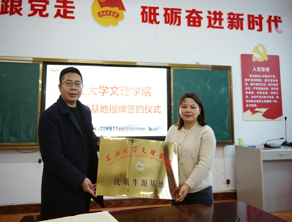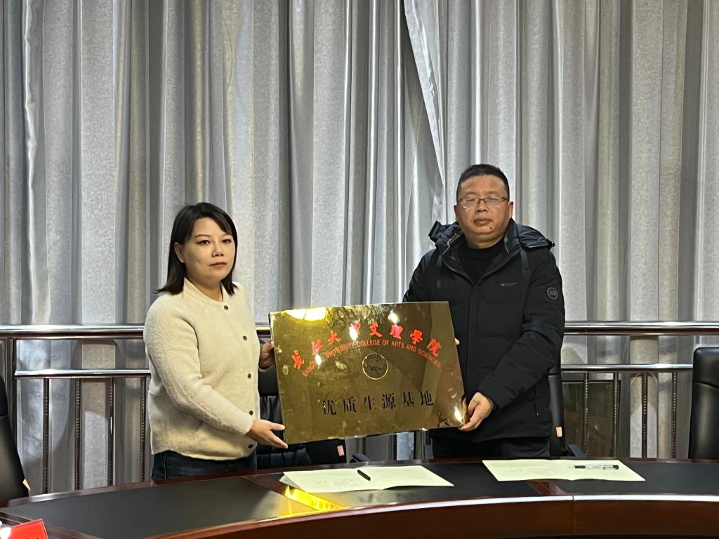 李波肯定了咸丰一中的办学水平和教学质量,介绍了我校的基本情况、办学优势和办学特色,并对近年来我校的招生政策、特色专业、人才培养等情况进行了细致的解读。李波表示,我校愿同咸丰一中建立友好合作的长效机制,加强与中学之间的交流与合作,为选拔、输送和共同培育优秀学生搭建更好的平台,共同提升生源质量、优化生源结构。座谈会最后,双方签订了“优质生源基地”合作协议书,并举行授牌仪式。