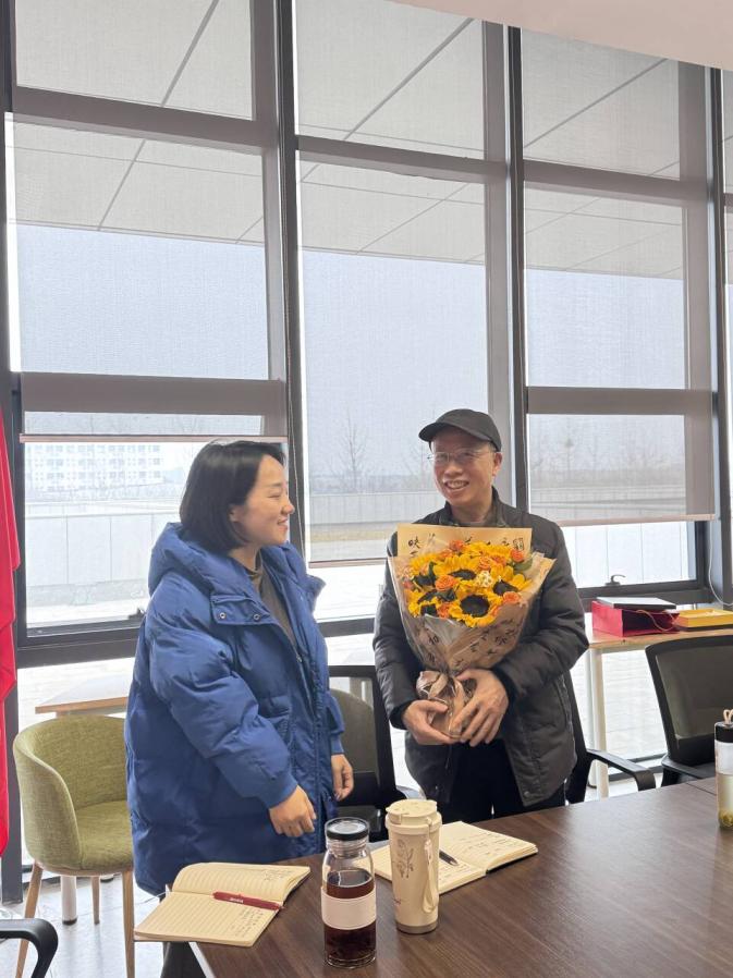 刘磊代表校工会向万主任献上鲜花,表达了对万主任的祝贺与祝福。