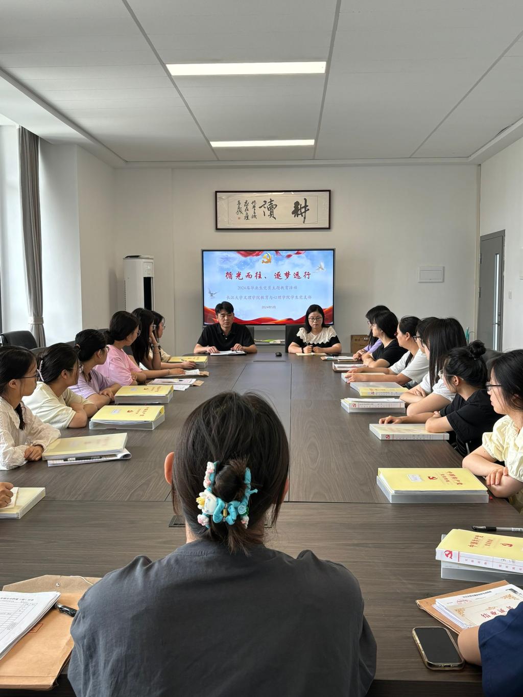 同日下午,为了更好地倾听毕业生心声,教育与心理学院在会议室召开“2024届毕业生座谈会”。了解毕业生代表关于毕业和就业困难的现实状况,听取毕业生们对学校建设发展的建议。会上,祝峰帮助学子解难纾困,明晰就业方向,鼓励毕业生党员继续秉承文理学子的责任担当,在未来的工作岗位上发挥党员先锋模范作用。