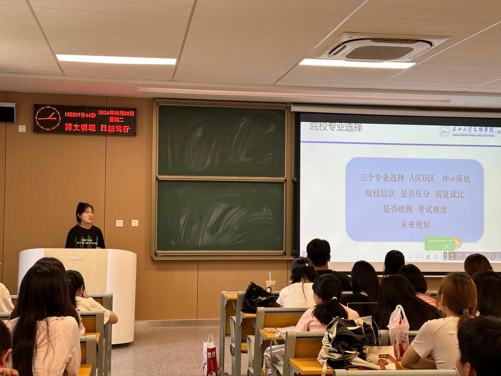 5月28日,教育与心理学院在C-219教室举办考研分享会。组织毕业生党员以未来校友的身份,通过向低年级的同学分享大学四年的学习心得,考研经验,并建立党员校友导师长效联系机制,充分发挥党员示范引领作用。围绕学院“两康一训”教育工作,促进学生高质量就业。