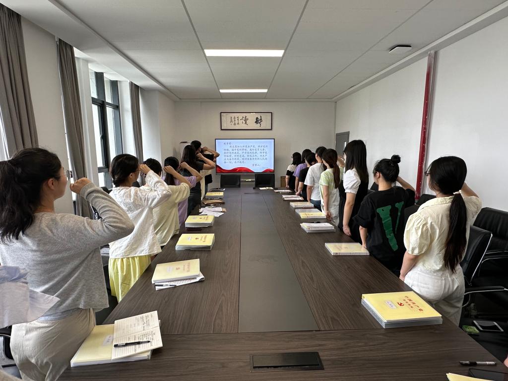 课后,党总支副书记梅曼曼带领全体毕业生党员面向鲜红的党旗,重温入党誓词。“我志愿加入中国共产党……随时准备为党和人民牺牲一切,永不叛党。”在铿锵有力的誓词声中,党员们再次感悟着自己入党时的初心和使命,重新接受了一次深刻的思想教育和精神洗礼。