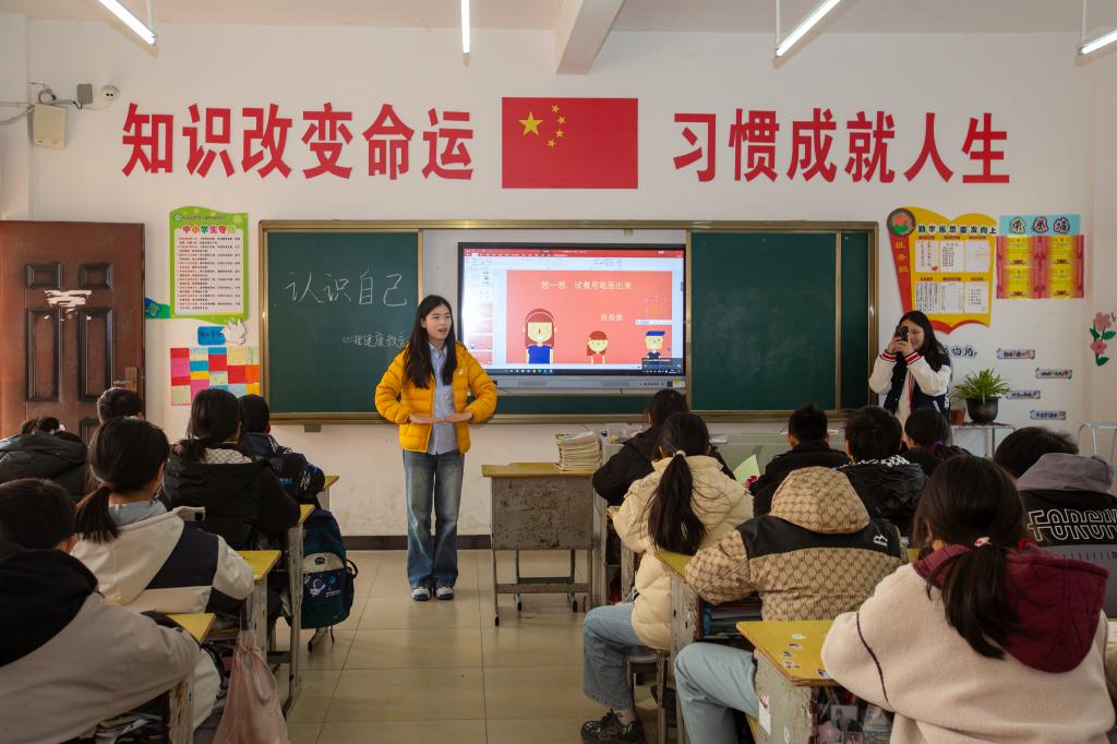 活动中,志愿者们首先通过一系列温馨有趣的小游戏,迅速拉近了与孩子们的距离,营造了轻松愉悦的氛围。随后,围绕“认识自我”的主题课堂,志愿者们巧妙设计了互动环节,向孩子们分发了民建荆州市委会捐赠的学习用品,鼓励他们勇敢表达内心感受,同时通过绘制自画像、列出个人优点清单等方式,引导孩子们全面认识并接纳自我。这不仅显著提升了孩子们的自信心,还学会了如何调节自己的情绪和心态,这都增强了他们的心理健康意识和素养。