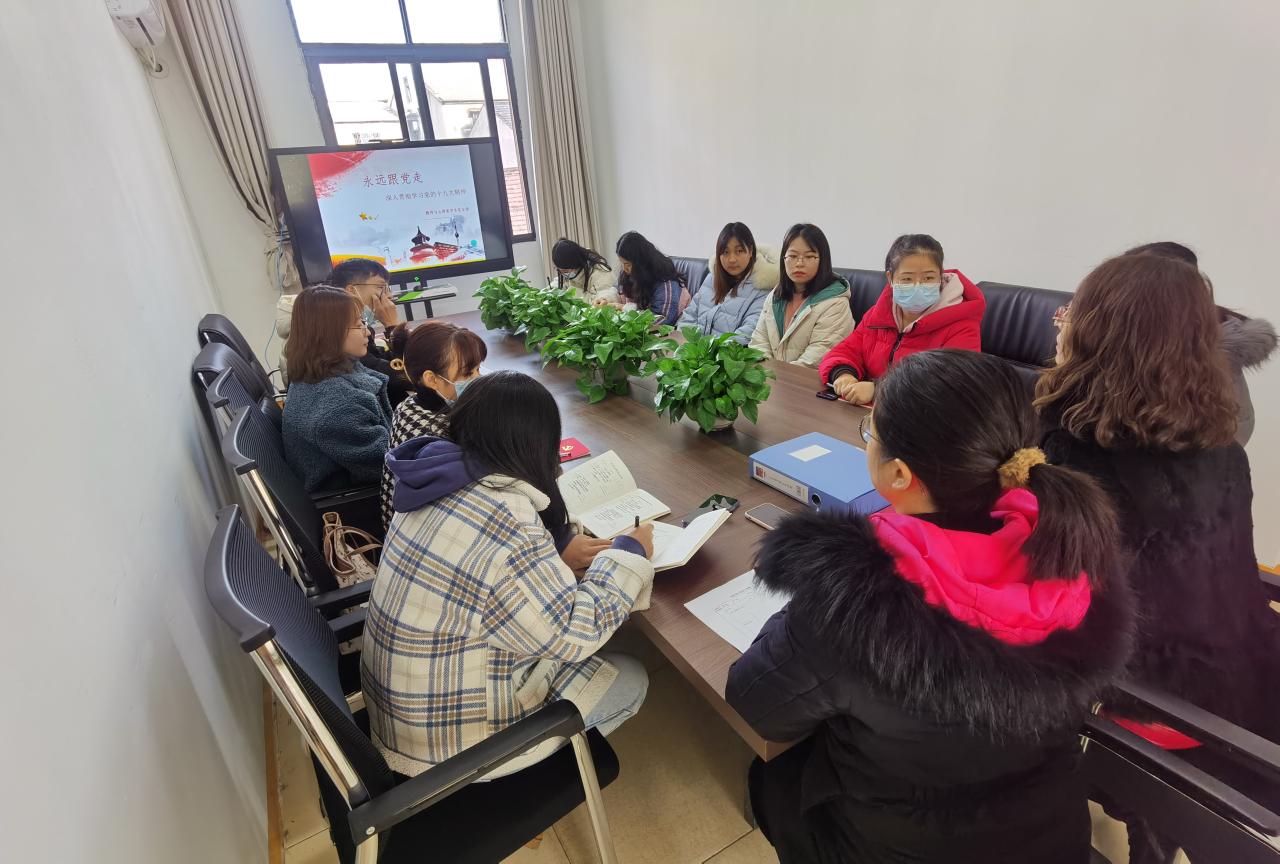 (学生通讯员彭慧玲)12月24日上午,为了深入学习贯彻党的十九大精神,强化认同感,激发使命感,学生党支部书记梅曼曼以“永远跟党走---深入贯彻学习党的十九大精神”为主题,为我系学生党员开展了一次党课学习活动。参与此次大会的还有系党总支书记李刚英。