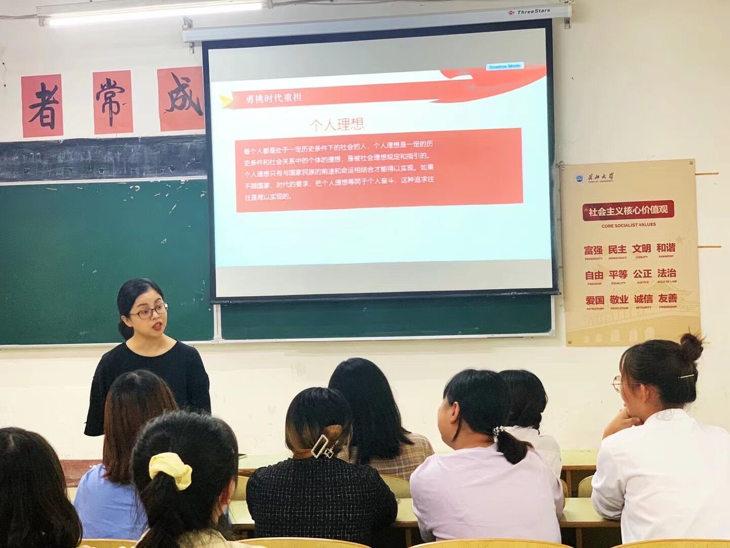 之后,教工党支部书记徐霄老师和学生党支部书记梅曼曼老师分别在两个会场给教师和学生党员讲党课。徐霄老师从党的一大到党的十九大 ,从十几人到如今的世界第一大党,回顾党的百年峥嵘岁月,铭记老一辈革命家的丰功伟绩,以史明志,学史力行。梅曼曼老师围绕“面对病毒和自然灾害的侵袭,面对百年未有之大变局的加速演变,当代青年,梦想如何绽放,人生何以出彩?如何做合格的社会主义事业接班人和建设者”给学生党员上了生动的一课,以一件件鲜活的事例鼓励学生党员要在奋斗中实现青春梦想。从坚定远大理想、勇挑时代重担、坚持踏实躬行、矢志艰苦奋斗四个方面阐述了学生党员怎样在奋斗中实现青春梦想。