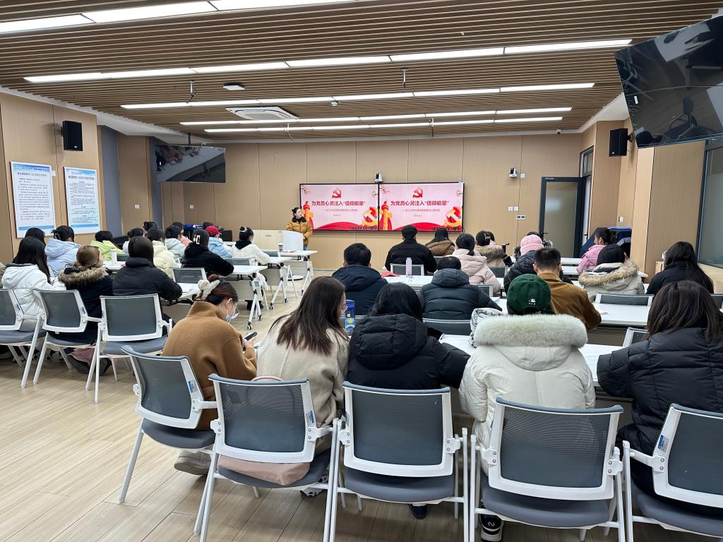 12月12日下午,教育与心理学院党总支在实验楼A408教室开展党总支副书记梅曼曼为全体师生党员讲党课活动。梅曼曼以“为党员心灵注入信仰能量”为主题,组织党员同志共同回顾入党初心。