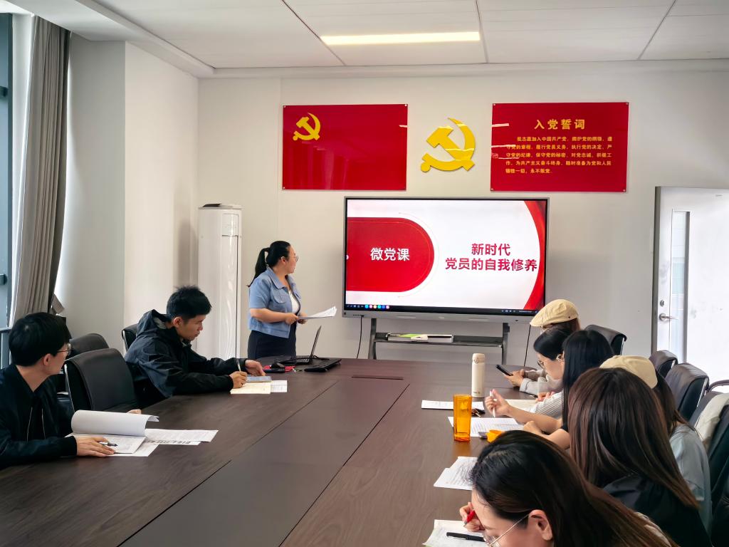 最后,鲁婷讲授学习党的二十届三中全会精神专题党课。在联系实际、交流研讨环节,围绕“作风建设永远在路上”这一主题,党员教师陈盈盈、张一诺、乔炎等结合工作实际作了交流发言。