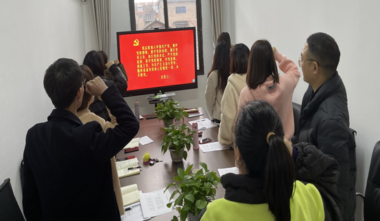 政治学习结束后,所有党员召开了党员支部主题党日活动。全体党员重温入党誓词,学习习近平在中央党校(国家行政学院)中青年干部培训班开班式上的重要讲话(2021年3月1日)。