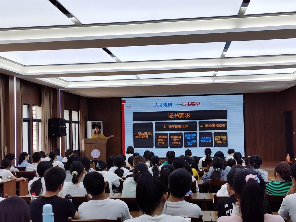 活动由教研室主任肖雅筠主持,学前教育专业鲁婷老师从专业建设历程、培养目标与课程设置、师资力量与教学条件、师生活动以及教学质量等方面向学生进行了全面的介绍,并且鼓励大家努力学好专业知识,勤练专业技能,期待每位学生在学前教育知识与技能的各项大赛中绽放自己的光彩。