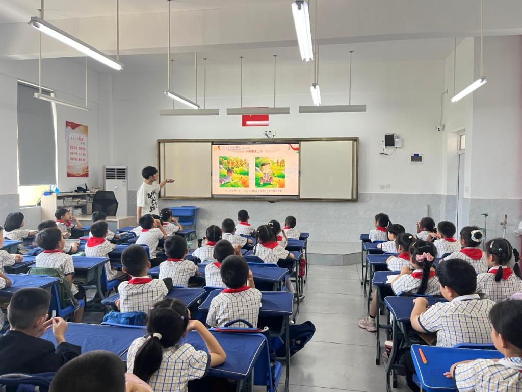 (通讯员 图/文 李诗羽 李俊涛)为了深化红色文化与思政教育的有机融合,推进“大中小思政一体化”建设落地生根,锻炼大学生党员的社会实践和教育传播能力,6月5日下午教育与心理学院学生党支部组织全体大学生党员走进荆州市实验小学城南校区,为二(1)班的学生们精心打造了一场别具特色的红色主题教育实践活动,通过形式多样的互动模式,播撒红色精神的种子。