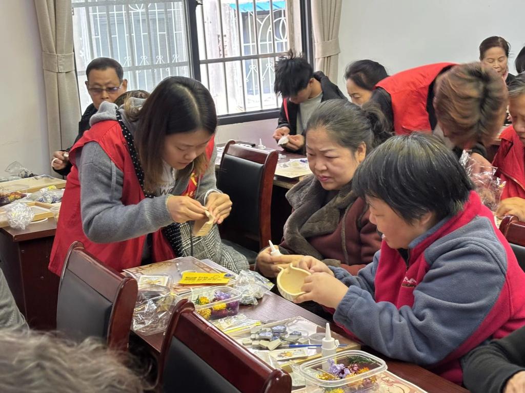 活动伊始,社区文艺团队表演了精彩的歌舞节目,营造出浓厚的节日氛围。随后,我院志愿者通过PPT生动呈现重阳节传统习俗,并巧妙设置有奖问答环节。在轻松有趣的互动里,现场的老人既重温了节日传统,也再次感受到了重阳节所承载的敬老美德。在手工制作环节,志愿者分组协助老人完成“重阳节立体手工画”制作,从材料准备到创作指导全程陪伴,让老人们在动手过程中收获成就感与节日温暖。活动尾声,志愿者与现场老人们一同定格镜头,留下了一张张满含温情的合影。