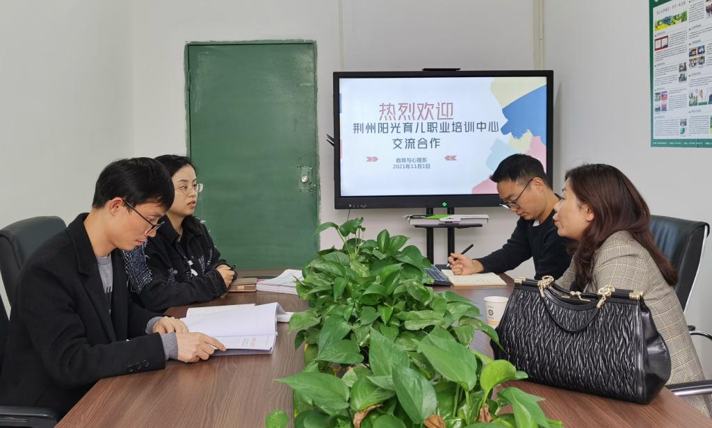 本网讯(通讯员 杨琪)昨日(11月1日)下午,荆州市阳光育儿职业培训中心(以下称培训中心)来我系就校企合作事宜进行交流,出席此次交流会的有教育与心理系系主任徐霄、党总支副书记梅曼曼、辅导员覃儒卿及培训中心负责人。