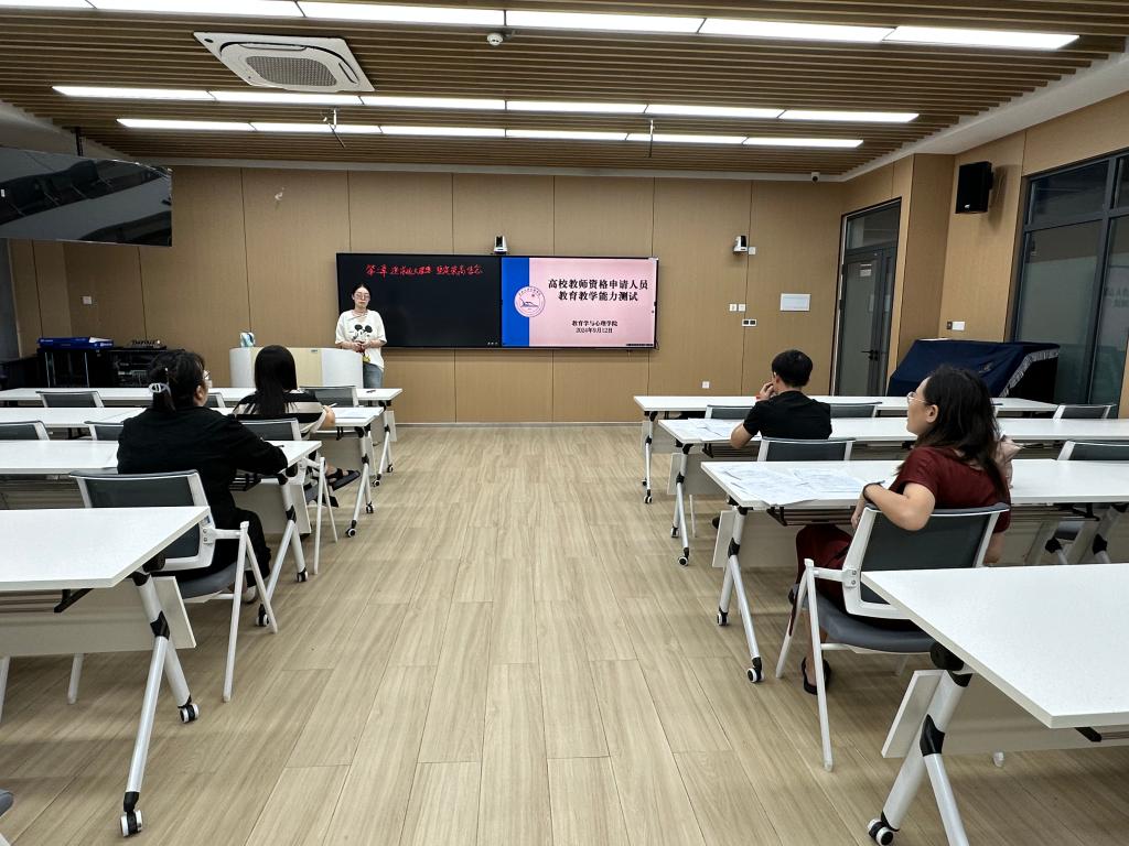 (通讯员 图文/刘娅)根据湖北省教育厅《关于2024年我省高校教师资格认定工作安排的通知》要求及学校人事处相关工作安排,我院于9月12日下午在实验楼A-408教室举行了2024年高校教师资格认定教育教学能力测试。本次测试由学院院长徐霄主持,各专业教研室主任担任评委。